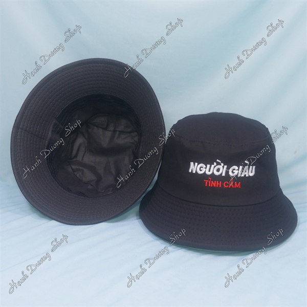 Nón tai bèo mũ bucket vành nhỏ thêu chữ Người Giàu Tình Cảm