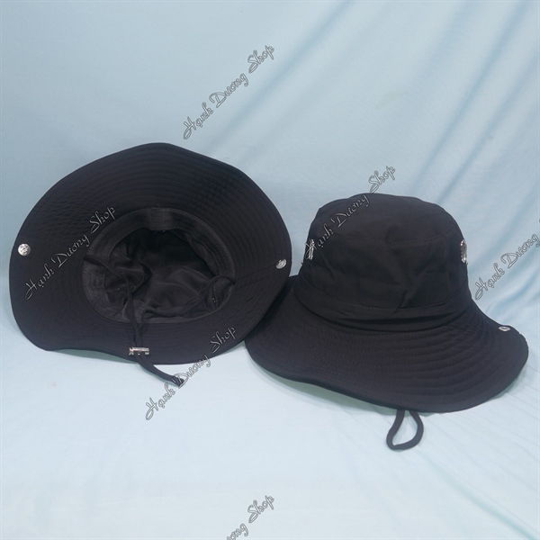 Nón tai bèo vành rộng 8,5cm vòng đầu 56-58cm trơn không thêu có sò và nút 2 bên hông, có dây quai inox xịn sò chất liệu vải cotton