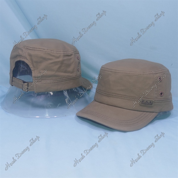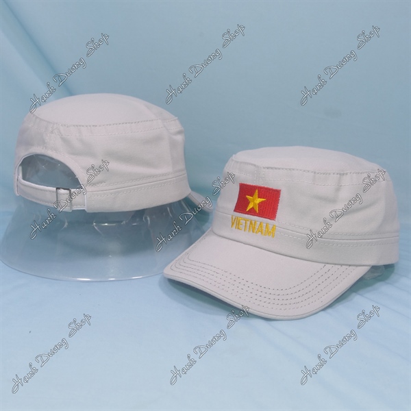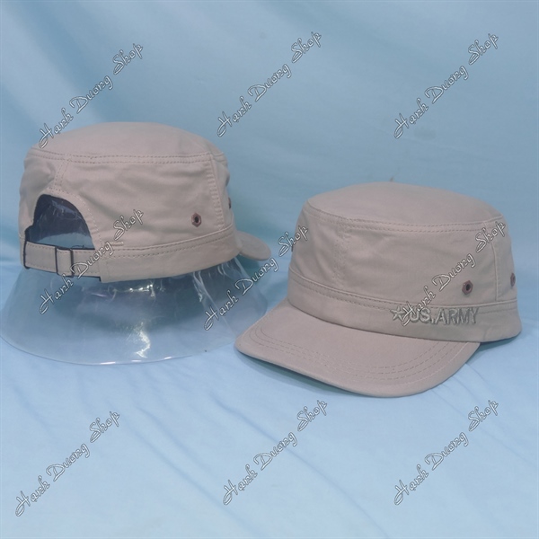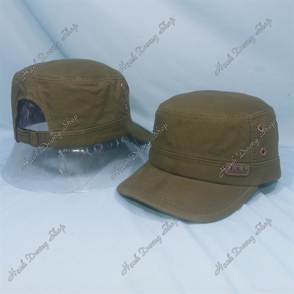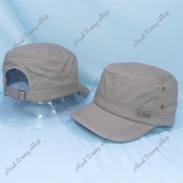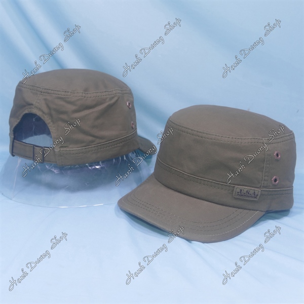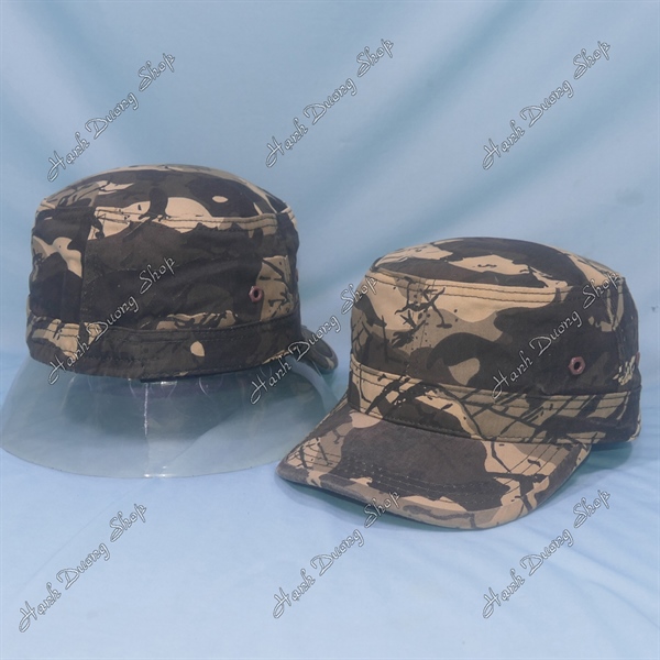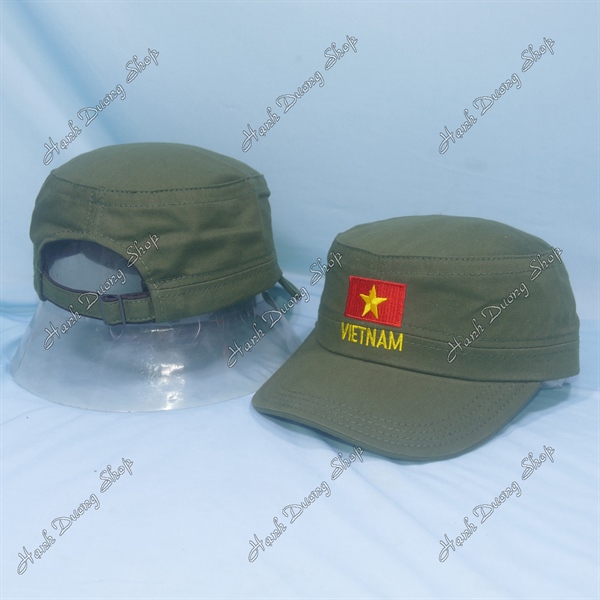 Nón lính mũ lưỡi trai đầu bằng thêu ngôi sao chạy sọc 2 bên hông, có đóng 4 sò 2 bên