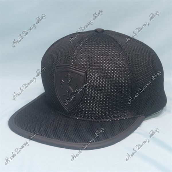 Nón kết lưới thêu hình có ngựa phía sau có khóa da nút bấm, kết viền da, trong có tem