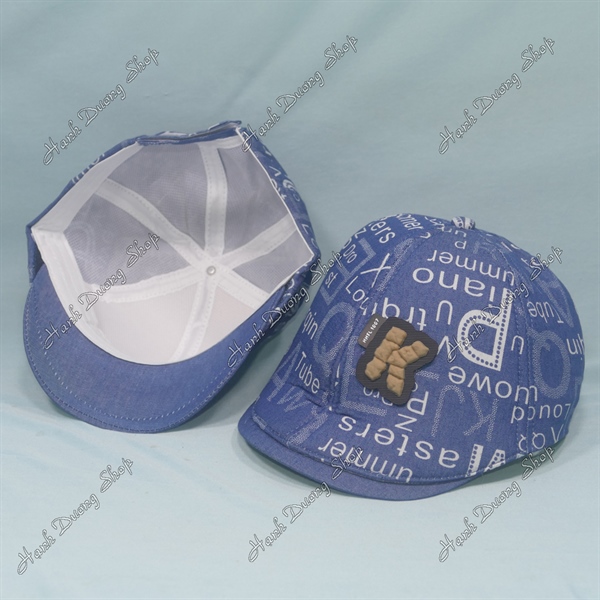 Nón mỏ vịt trẻ em hàng quảng châu gắn chữ K từ 2-5 tuổi ( vòng đầu 51 cm) chất liệu vải cotton có in