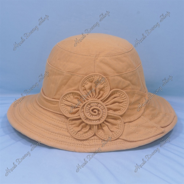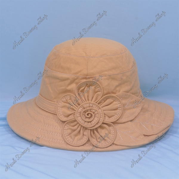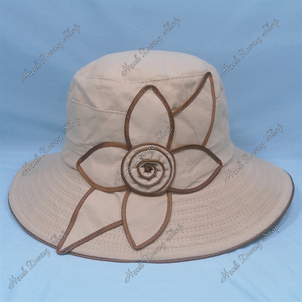 Nón bo vành rộng 7cm gắn hoa và lá, vải cotton cao cấp của AT