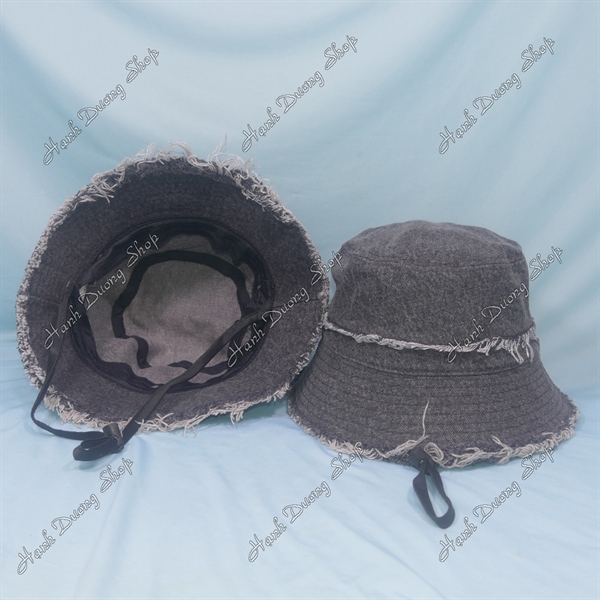 Nón tai bèo jean hàng quảng châu vòng đầu 58-59cm, mũ bucket có may quai gắn chữ D bên hông phía trong có dây rút giảm size vải jean oát