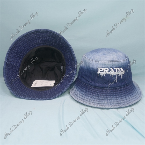 Nón tai bèo jean Prada vòng đầu 57-58cm vành rộng 6cm, nón bucket jean oát loang
